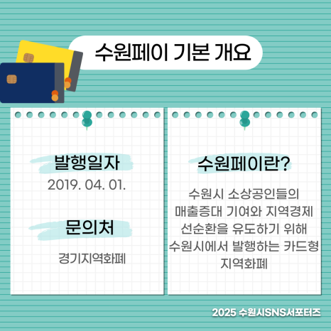 ☑️ 수원시 소상공인들의 매출증대에 기여하고 지역경제 선순환을 유도하기 위해 수원시에서 발행하는 카드형 지역화폐