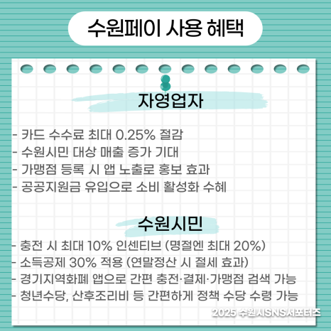 – 수원페이 결제 시 이용 고객들에게 추가로 할인혜택이나 쿠폰을 제공하는 가맹점