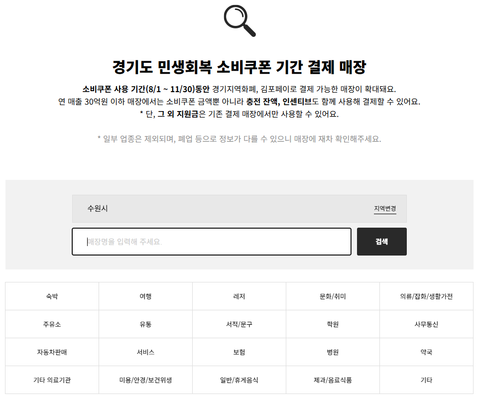 ☑️ 경기지역화폐 어플내 “경기지역화폐 가맹점찾기” ⇒ “수원시”