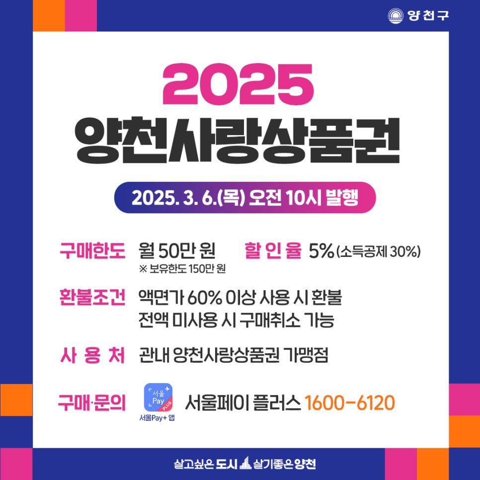 ☑️ 소상공인 매출 증가와 양천구민의 가계부담 완화를 위해 서울시 양천구에서 발행한 지역화폐